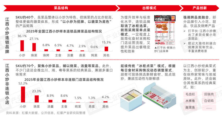 另據(jù)《報(bào)告》指出,對比傳統(tǒng)的“夫妻店”模式,江西小炒連鎖品牌在經(jīng)營模式上也呈現(xiàn)出標(biāo)準(zhǔn)化特征。